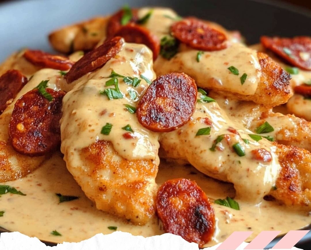 1- Dans une poêle, chauffer un peu d’huile d’olive et y faire dorer les aiguillettes de poulet pendant environ 5 minutes de chaque côté, jusqu’à ce qu’elles soient bien cuites. Réserver.