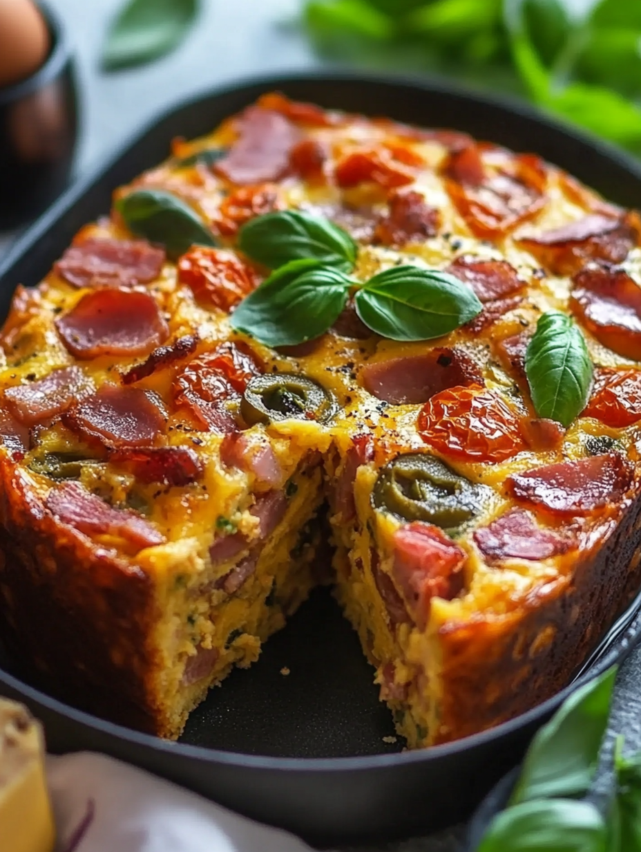 Ces ingrédients forment une base parfaite. L’huile d’olive apporte du moelleux, les œufs donnent de la structure, et les lardons offrent ce goût savoureux qu’on adore.