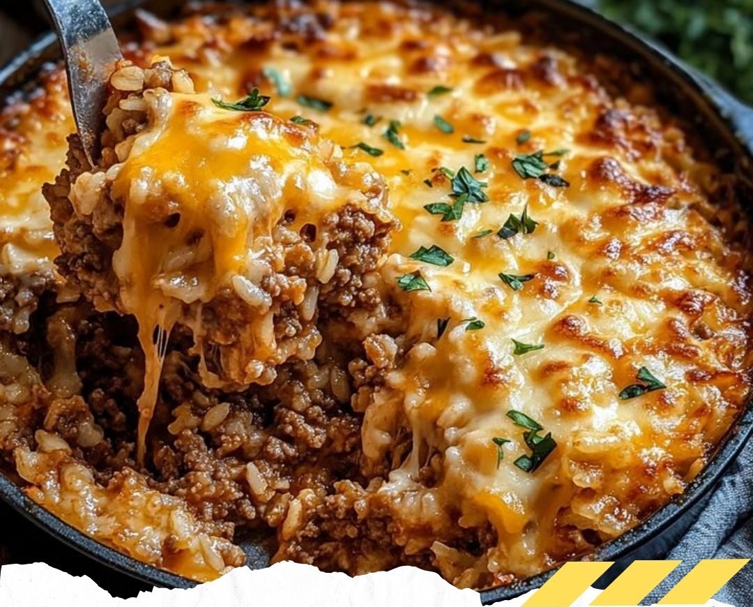 Déposez le mélange de bœuf et légumes sur le mélange de riz, et étalez uniformément.