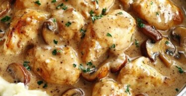 Morceaux de Poulet aux Champignons Façon Stroganoff