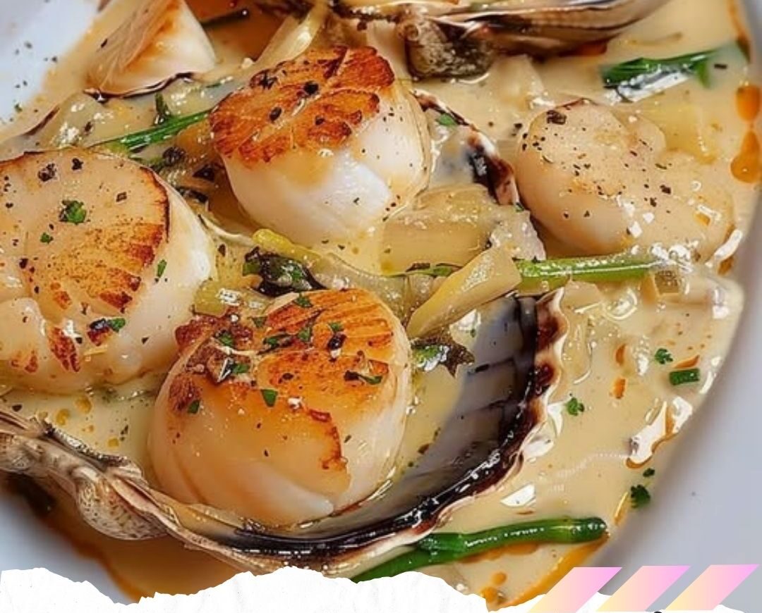 Cuisson des noix de Saint-Jacques : Dans une autre poêle, faire chauffer du beurre et saisir les noix de Saint-Jacques environ 1-2 minutes de chaque côté.