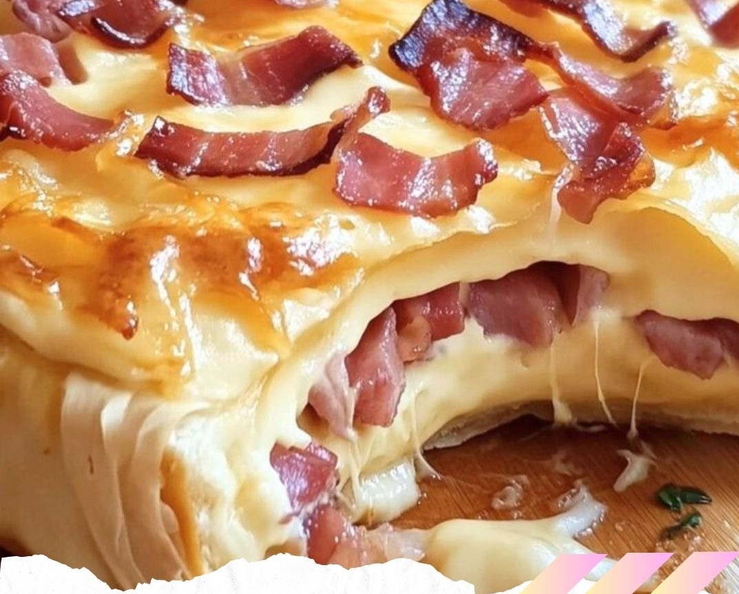 6. Repliez les bords de la pâte sur le fromage et les lardons pour former un petit bord relevé.