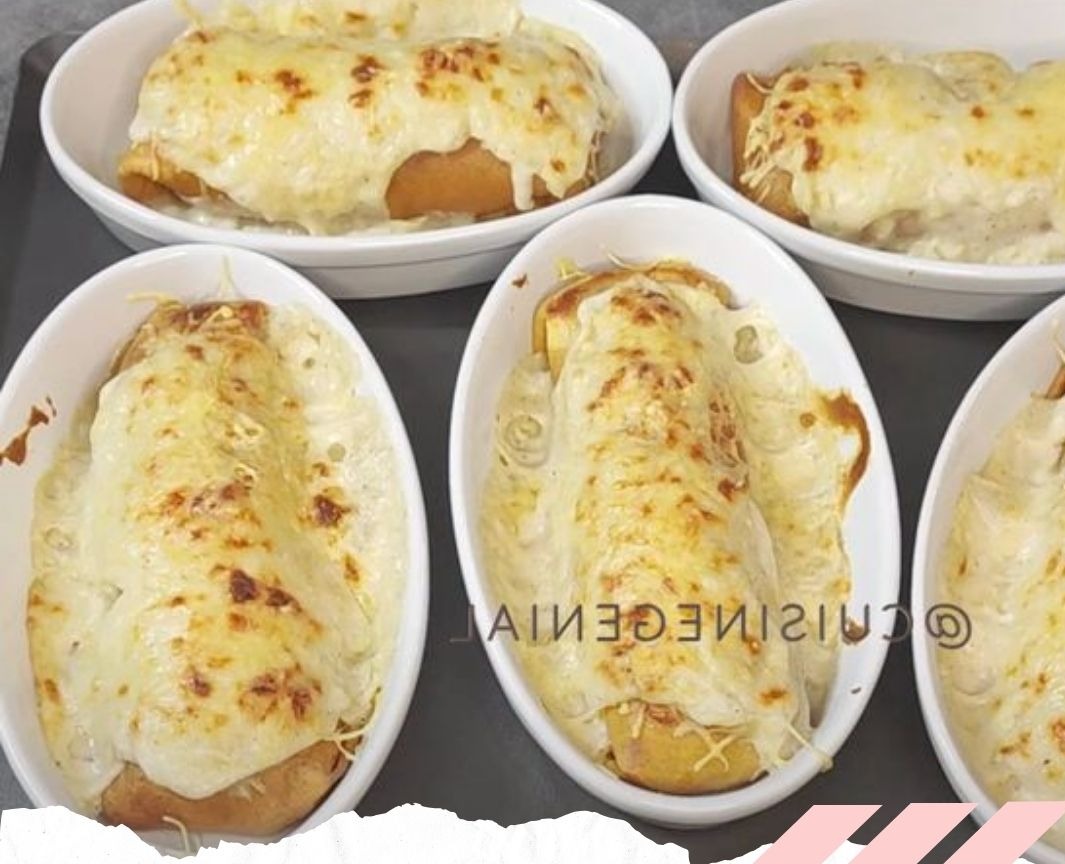 5. Saupoudrez les ficelles de gruyère râpé et passez au four à 200°C (thermostat 5) pendant 10 minutes. Servez bien chaud.