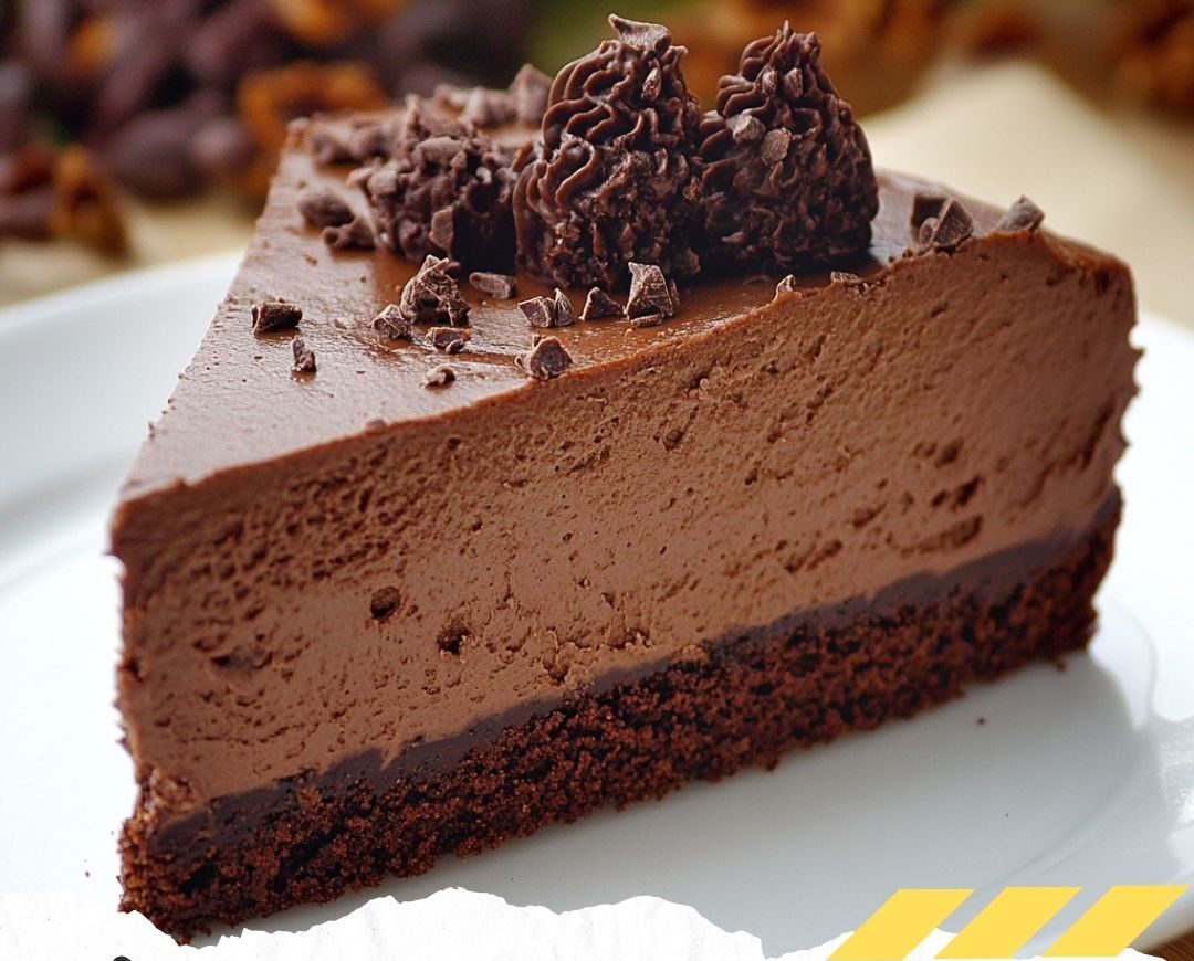 2- Versez la mousse au chocolat sur le biscuit et lissez la surface.