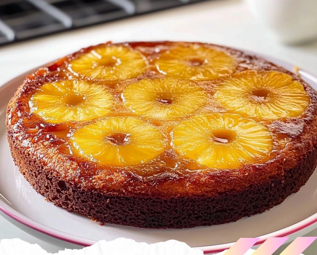 4- Mettez sur le caramel les rondelles d’ananas (réservez le jus).