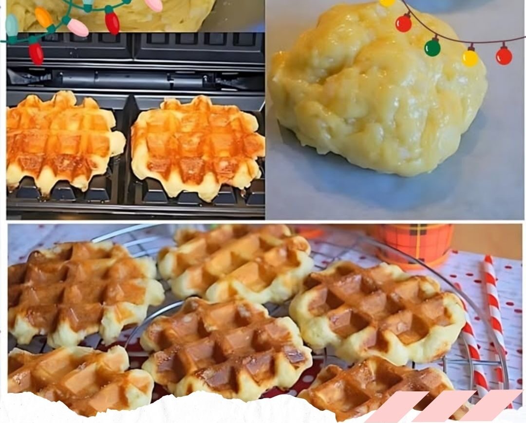Déposez une boule de pâte dans chaque empreinte du gaufrier et laissez cuire pendant environ 3 à 5 minutes, jusqu’à ce que les gaufres soient dorées et caramélisées à l’extérieur.