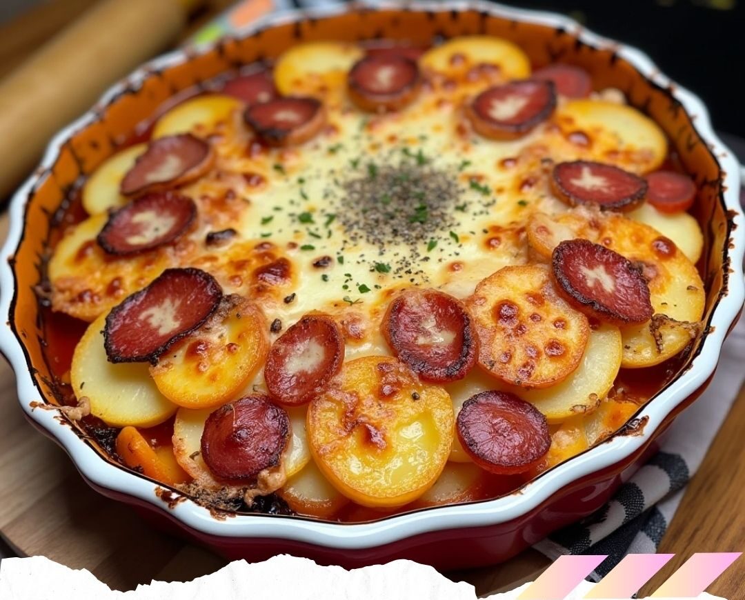 Gratin de pommes de terre, chorizo, tomate et béchamel