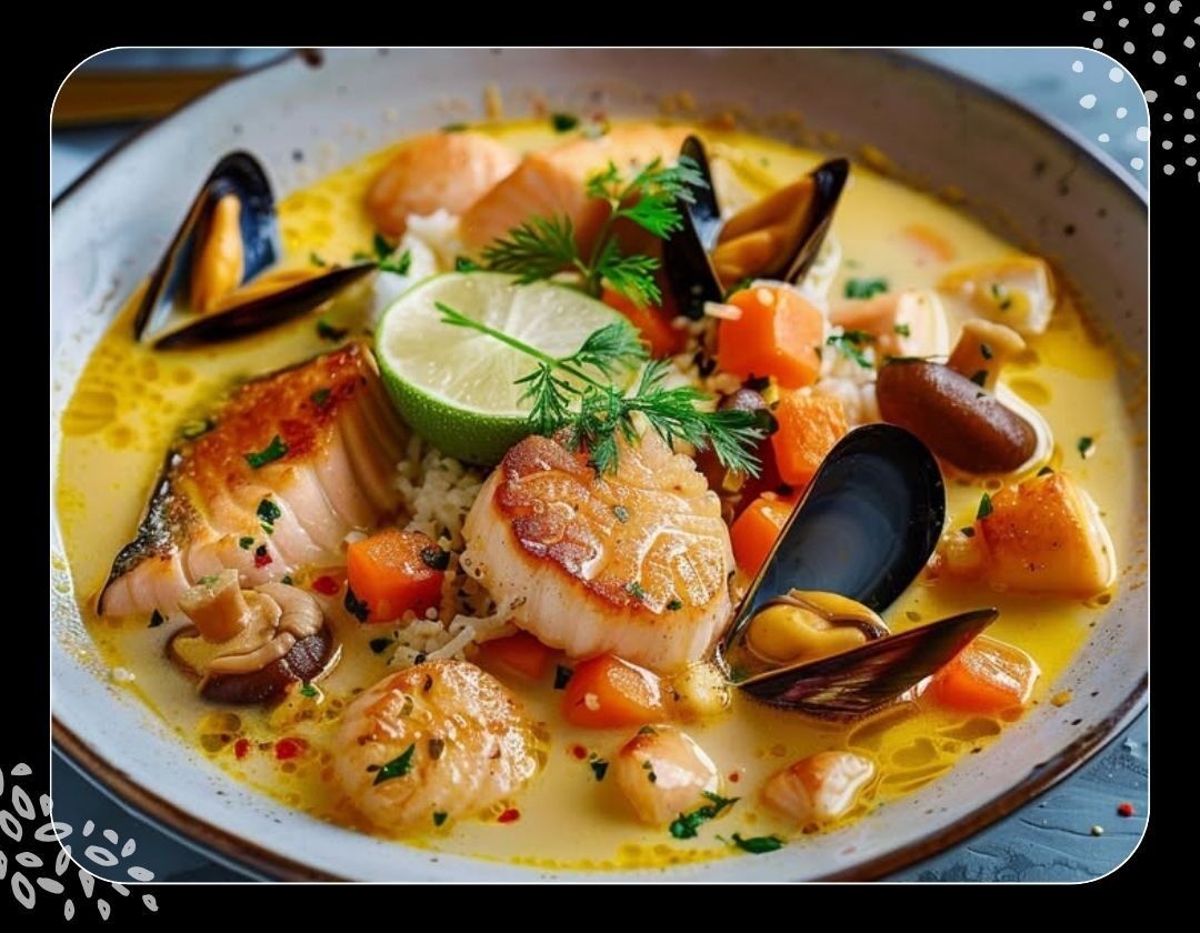 11- Incorporez les noix de Saint-Jacques, les moules et les champignons dans la sauteuse.