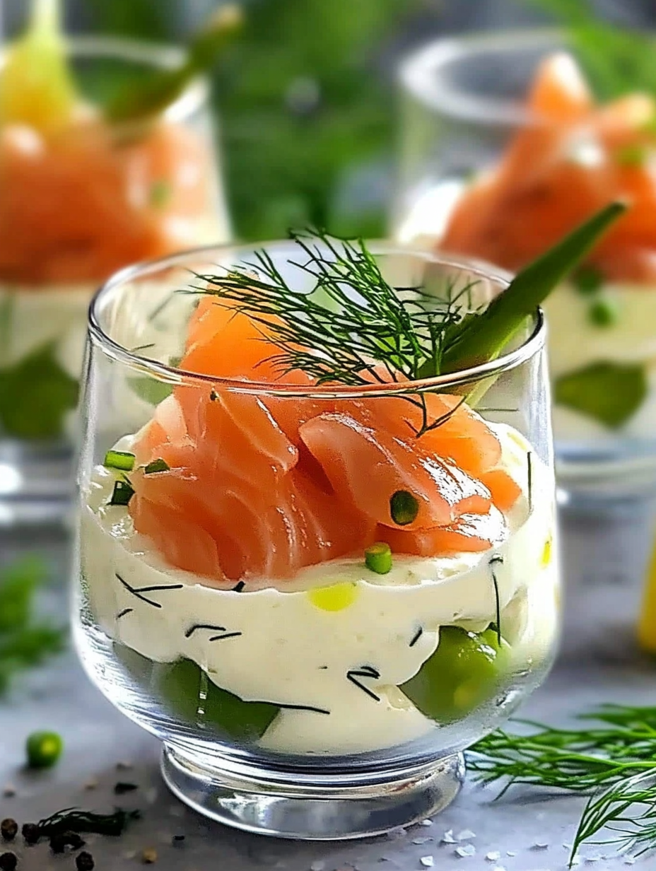 La présentation compte énormément. Utilise des verrines transparentes pour mettre en valeur les couches. Ajoute un brin d’aneth bien vert et éventuellement un zeste de citron.