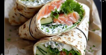 Wraps au fromage frais, concombres et saumon fumé