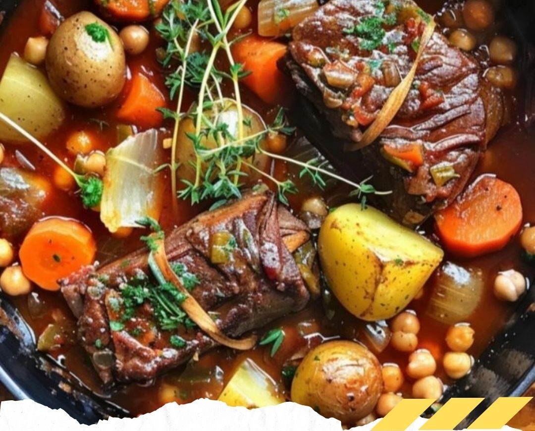 5. Égoutter les viandes et les légumes, les disposer dans un plat creux préchauffé.
