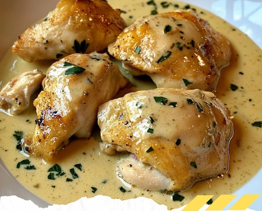8- Replacez les blancs de poulet dans la poêle, en les nappant de sauce. Couvrez et laissez cuire à feu doux pendant 10 à 15 minutes, jusqu’à ce que le poulet soit bien cuit.