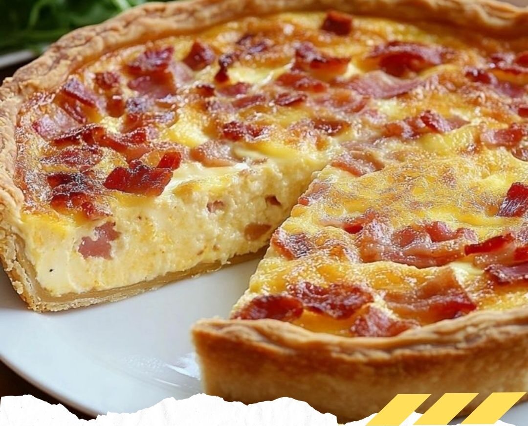 4. Versez ce mélange sur les lardons dans le moule à tarte, puis saupoudrez généreusement de gruyère râpé.