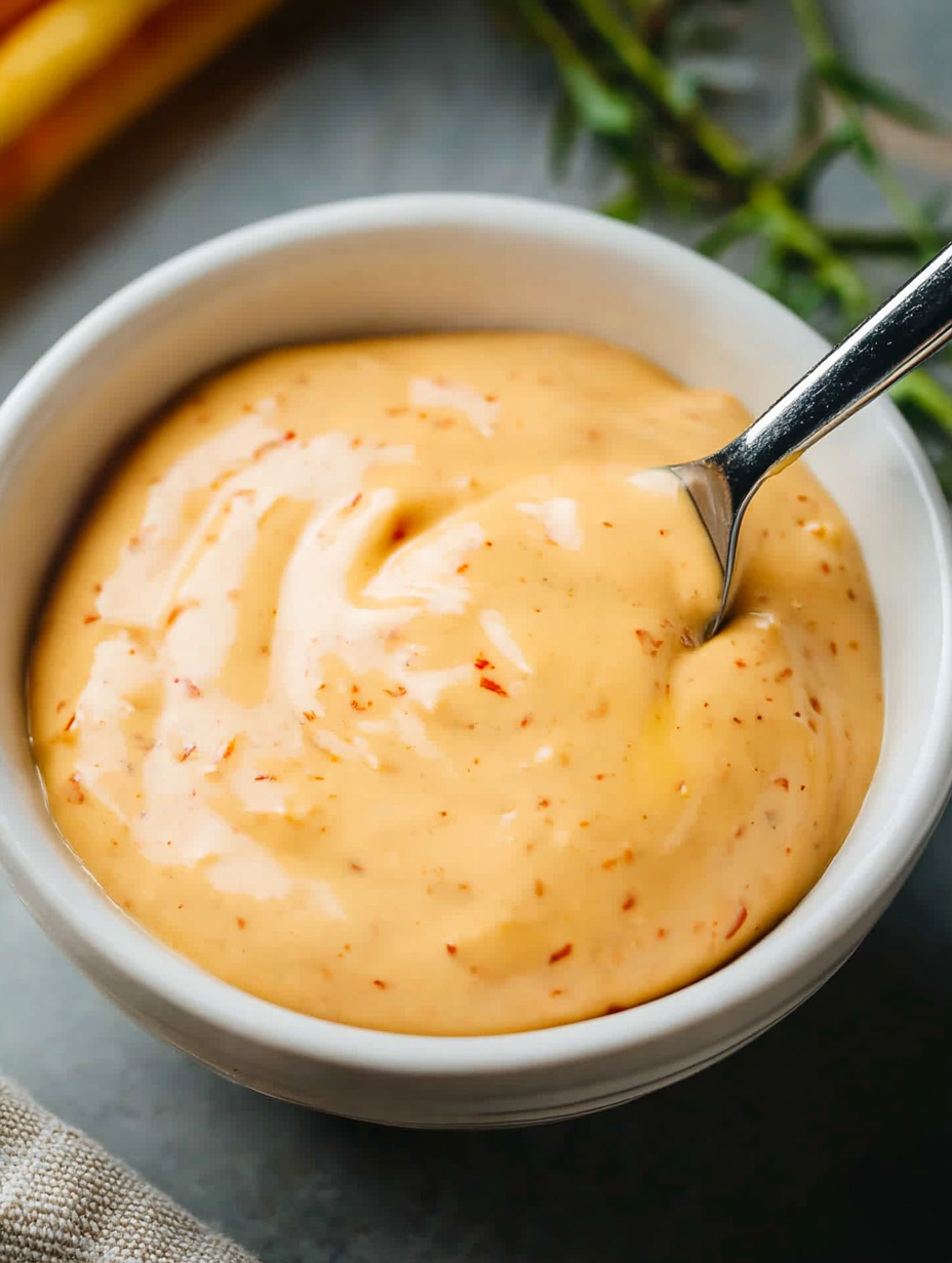 Une fois la sauce bien mélangée et assaisonnée à votre goût, couvrez le bol d’un film plastique et laissez reposer au réfrigérateur pendant au moins 30 minutes pour que les saveurs se développent.