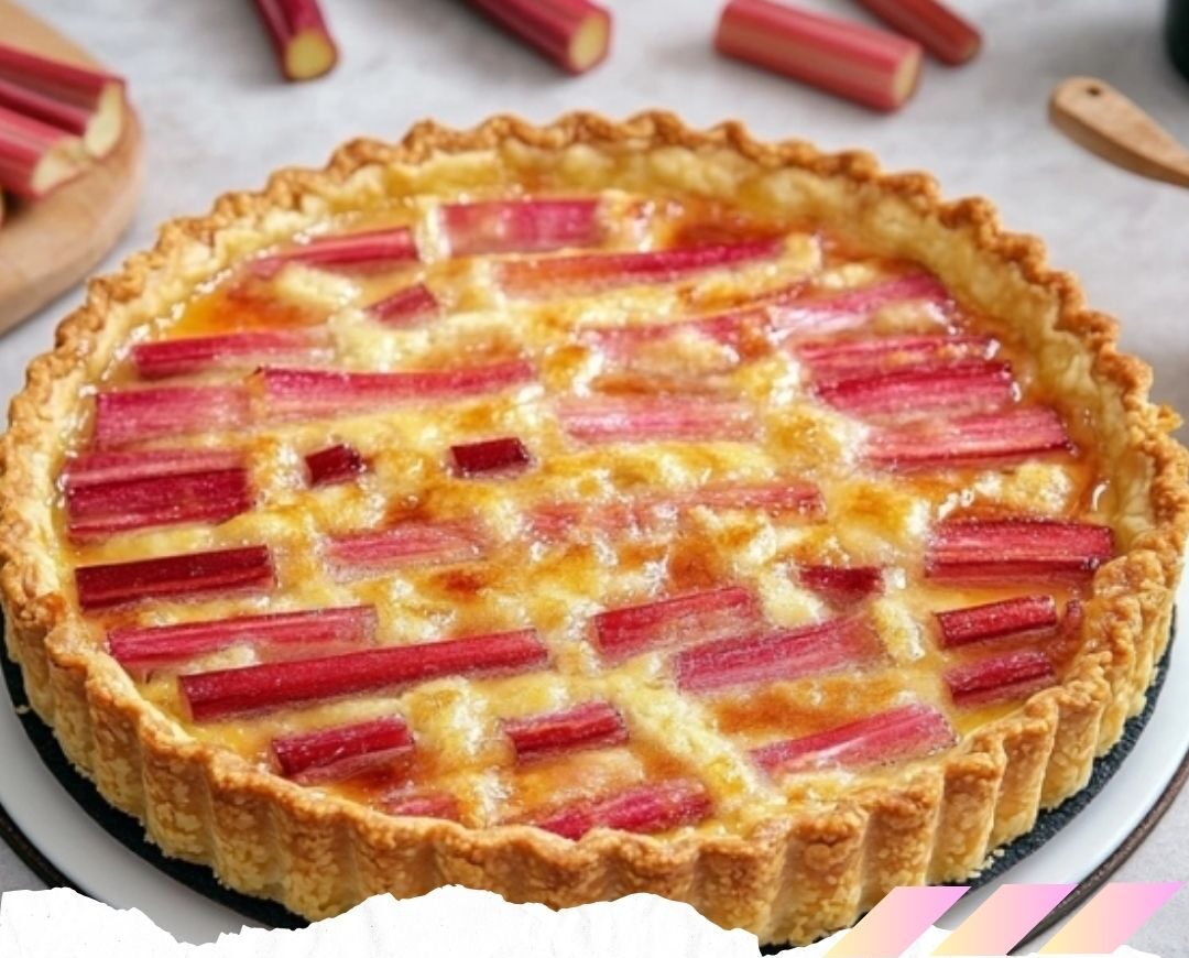 3) Épluchez la rhubarbe de façon à ce qu’elle n’ait plus du tout de fils, lavez-la, égouttez-la puis coupez-la en petits tronçons. Disposez-les sur la pâte à tarte.