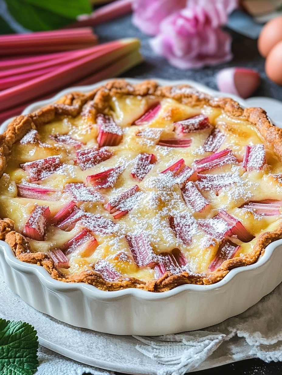 Envie d’essayer cette Tarte Moelleuse à la Rhubarbe dès aujourd’hui ? 🍓🥧