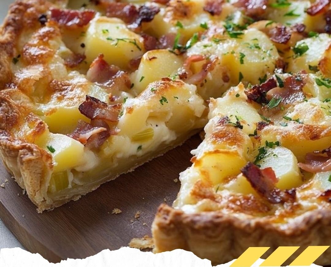 1. Épluchez les pommes de terre et nettoyez les poireaux en conservant une bonne partie du vert pour apporter de la couleur à la tarte.