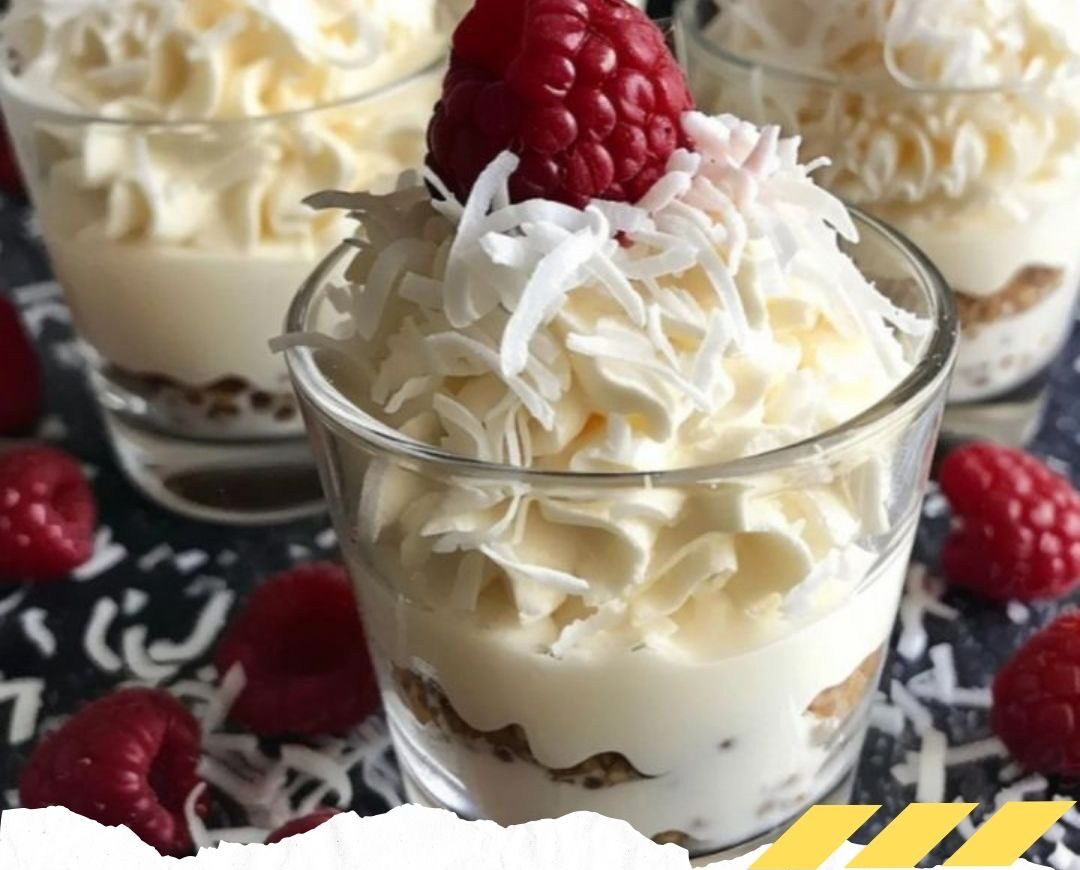 Les verrines sont l’un des desserts les plus élégants et faciles à préparer. Elles allient saveur et présentation soignée dans un format individuel, ce qui en fait le choix idéal pour un dessert raffiné. Inspirées des fameuses confiseries Raffaello, ces verrines offrent une fusion parfaite de noix de coco crémeuse, de ganache au chocolat blanc et de la fraîcheur acidulée des framboises.