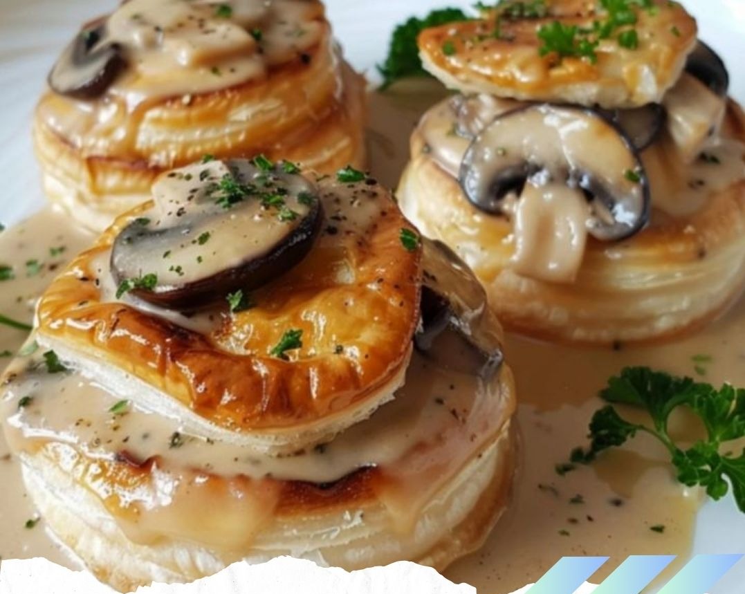 8. Remplir les vol-au-vent chauds avec la préparation au poulet et champignons.